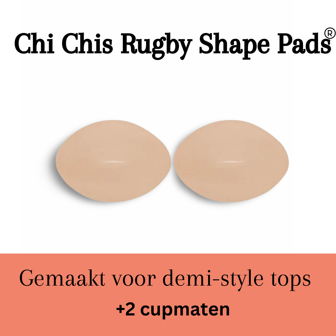 De rugby-shape pads zijn een verkorte versie van de v-shape pads. De rugby-shape pads voegen tot TWEE cupmaten toe, waardoor je meteen die prachtige decolleté hebt. Het ovale ontwerp zorgt ervoor dat het verborgen blijft in topjes met hartvormige halslijnen.