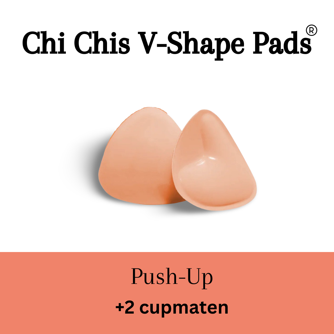 De v-shape pads zijn extra gevuld voor een vollere look in een paar seconden en voegen tot twee cupmaten toe zonder bh of operatie. Met hun afgeronde driehoekige vorm zijn ze speciaal ontworpen voor topjes met diepe plooien en bikini's met driehoekige vormen.